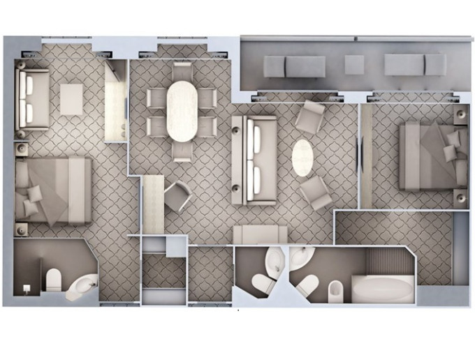 | R2 - Royal Suite 2 96 m² (vrátane 2 balkónov 16,5 m² spolu). 6. paluba. Max 6 osôb. | 116 800 € 116 800 € za osobu |
