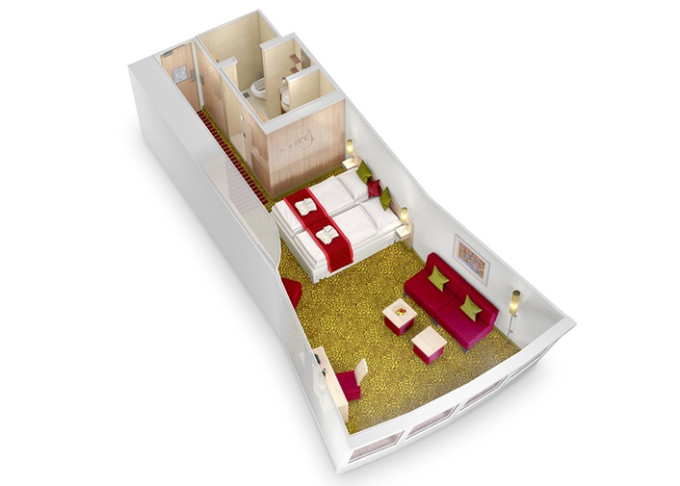 | SP - Suite Panorama PREMIUM 28 m². Veľké neotvárateľné panoramatické okná. 12. paluba. Max 4 osoby. Cenový model Premium + výhody Suite. | 6 470 € 3 235 € za osobu |