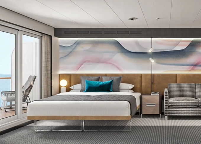 SI - Suite s veľkým balkónom na korme 24 m² / balkón 19 m². 9. paluba vzadu. Max 2 osoby. Výhody Suite 10 912 € 5 456 € za osobu
