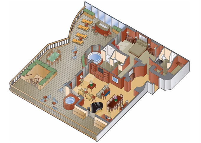 | CS - Celebrity Suite 44 m² + balkón 8 m². Kúpeľňa s vírivkou. 6. až 9. paluba. Max 3 osoby. Výhody Suite The Retreat. | 13 948 € 13 948 € za osobu | ||
