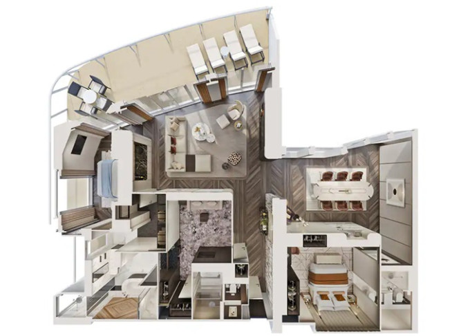 | H2 - The Haven Deluxe Owner's Suite 197 m² / balkón 45 m². 18. paluba vpredu. Max 6 osôb. Výhody The Haven. | 27 860 € 13 930 € za osobu | ||